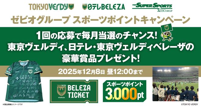 1回の応募で毎月当選のチャンス!東京ヴェルディ、日テレ・東京ヴェルディベレーザの豪華賞品プレゼント!