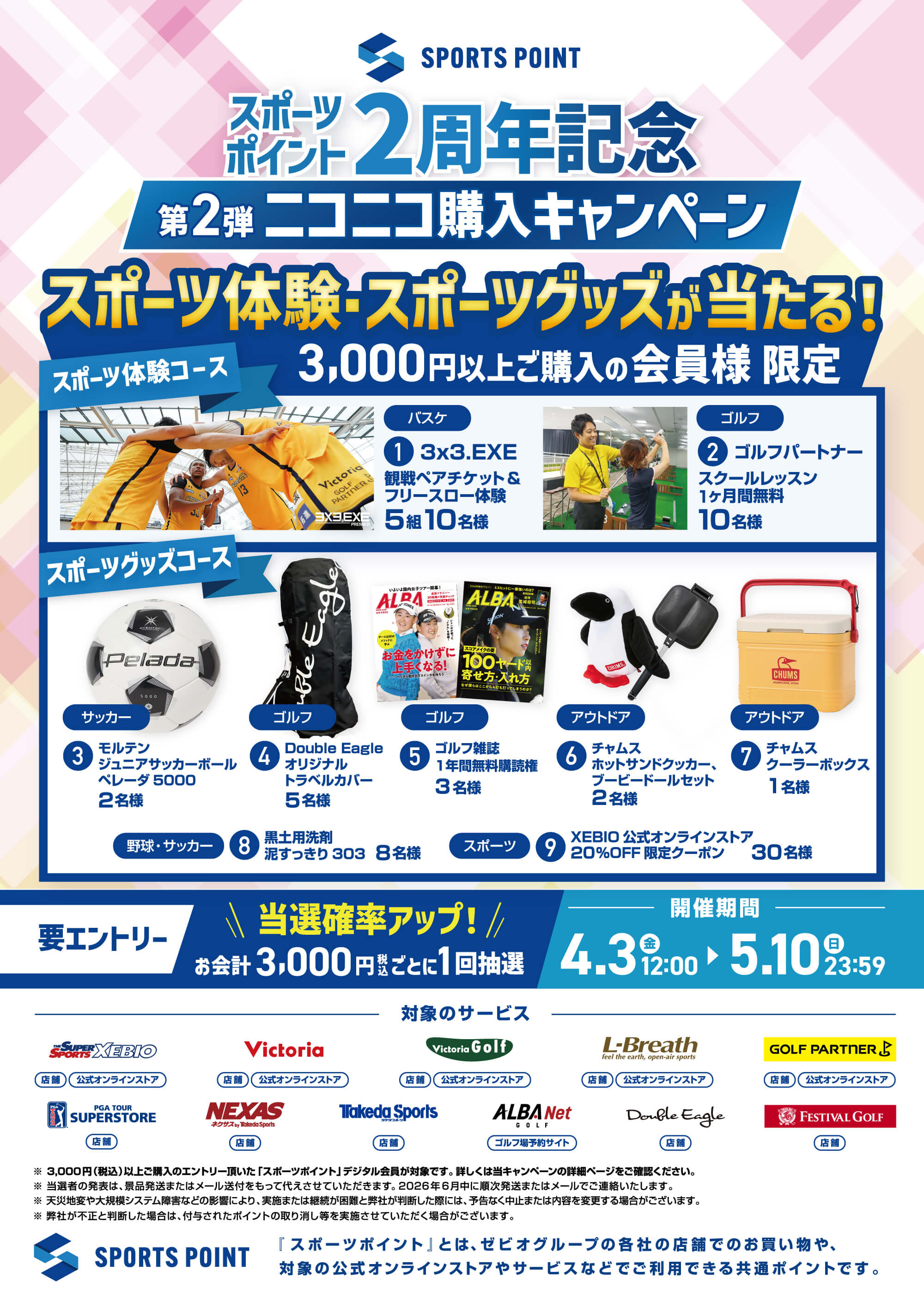 期間中、累計購入金額が3,000円(税込)以上ご購入のエントリー頂いた「スポーツポイント」デジタル会員が対象です。